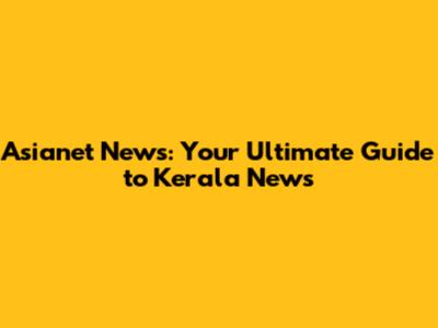 Asianet News: Your Go-To For Kerala News