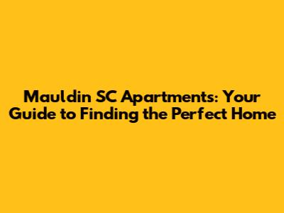 Hey guys! Looking for apartments in Mauldin, South Carolina? You've come to the right place! Finding the perfect apartment can feel like a Herculean task, but don't worry, we're here to break it down and make it a whole lot easier. Mauldin is a fantastic city with a lot to offer, and we're going to dive deep into what makes it a great place to live and how to snag the best apartment for your needs. Let's get started!