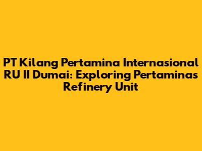 Hey guys! Ever wondered about the engine room of Indonesia's oil and gas industry? Let's dive deep into PT Kilang Pertamina Internasional Refinery Unit (RU) II Dumai, a vital cog in Pertamina's massive operations. This isn't just a refinery; it's a powerhouse that fuels a significant portion of the nation's energy needs. We're going to break down what makes RU II Dumai so important, from its history and operations to its impact on the local community and the Indonesian economy. So, buckle up and let's explore the world of oil refining!