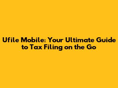 Ufile Mobile: Your Ultimate Guide To Tax Filing On The Go